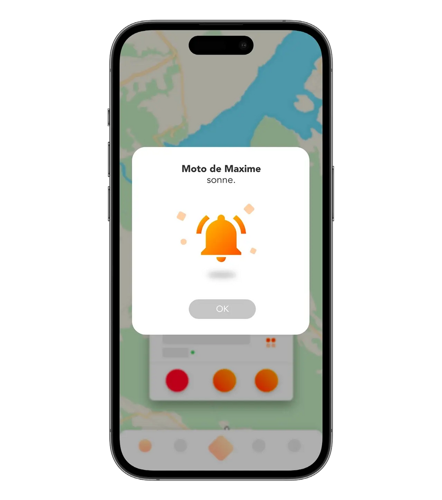 GeoRide vous alerte immédiatement en cas de mouvement sur votre moto.