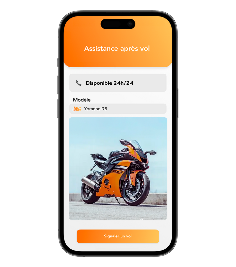 Lors d’un vol, notre Assistance après vol disponible 24h/24 prend le relais avec les forces de l’ordre pour vous aider à récupérer votre 2 roues. 90% des véhicules volés sont retrouvés en moins de 24h (données GeoRide du 1er janvier au 31 décembre 2022).